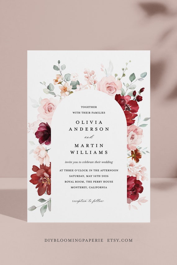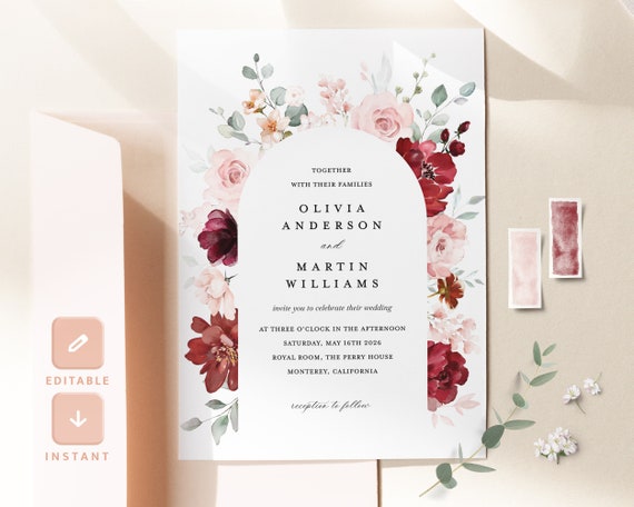 Source : issuu.comBurgundy Blush Wedding Invitation Template, Maroon Blush Arch